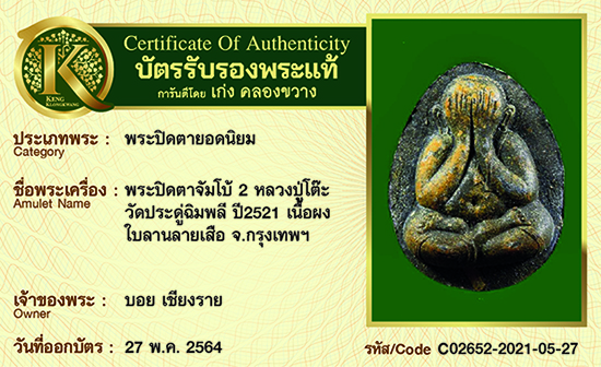 พระปิดตาหลวงปู่โต๊ะ วัดประดู่ฉิมพลี พิมพ์จัมโบ้ 2 ปี 2521 เนื้อผงใบลานลายเสือ จังหวัดกรุงเทพฯ
