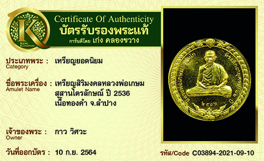 การันตีพระแท้ 100% พร้อมบัตรรับรองพระแท้ เก่ง คลองขวาง