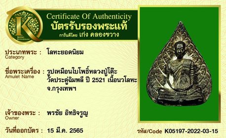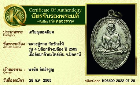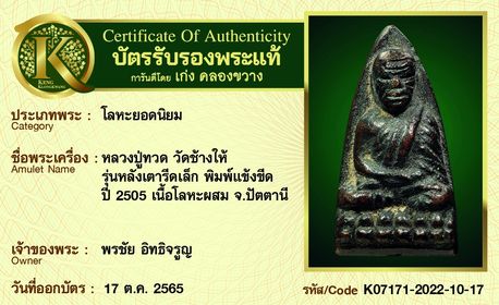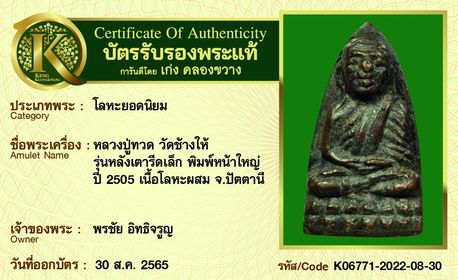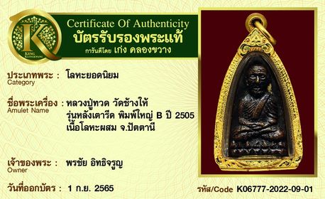 การันตีพระแท้ 100% พร้อมบัตรรับรองพระแท้ เก่ง คลองขวาง