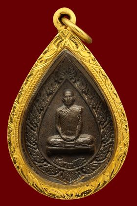 เหรียญหลวงปู่ทวด วัดข้างให้ รุ่น 4 บล็อกมีเม็ดตา ปี 2505 เนื้อทองแดงรมดำ จังหวัดปัตตานี