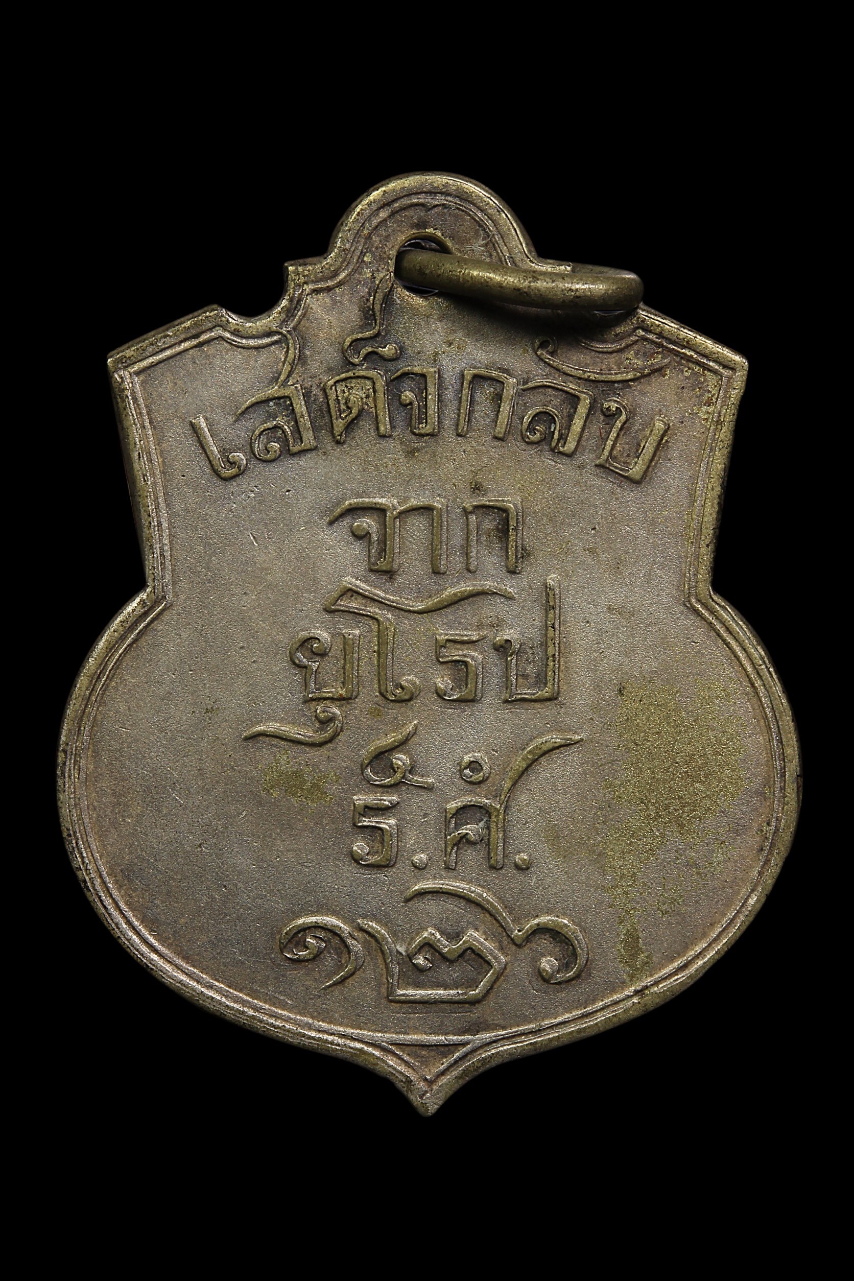 เหรียญรัชกาลที่ 5 รุ่นเสด็จกลับจากยุโรป บล็อกนิยม ปี 2450 เนื้ออัลปาก้า กะไหล่เงิน จังหวัดกรุงเทพฯ