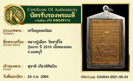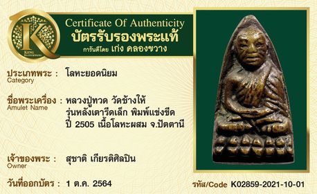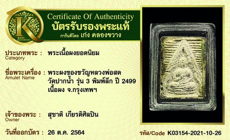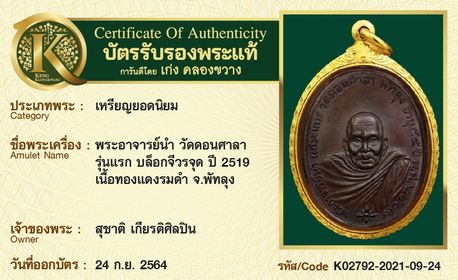 การันตีพระแท้ 100% พร้อมบัตรรับรองพระแท้ เก่ง คลองขวาง