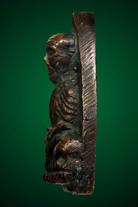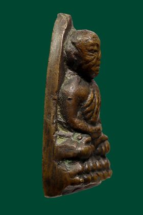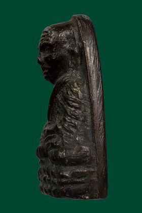 เหรียญอาจารย์นำ วัดดอนศาลา รุ่นแรก บล็อกจีวรจุด ปี 2519 เนื้อทองแดงรมดำ จังหวัดพัทลุง