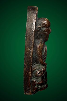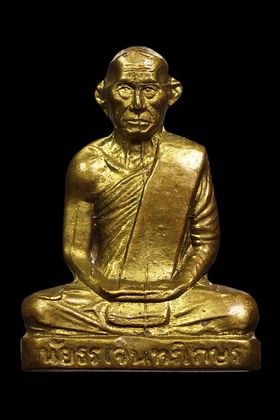 รูปหล่อปั๊มหลวงปู่จันทร์ วัดคลองระนง รุ่นแรก บล็อกนิยม ปี 2495 เนื้อทองเหลือง จังหวัดนครสวรรค์