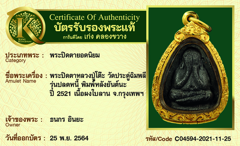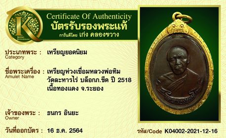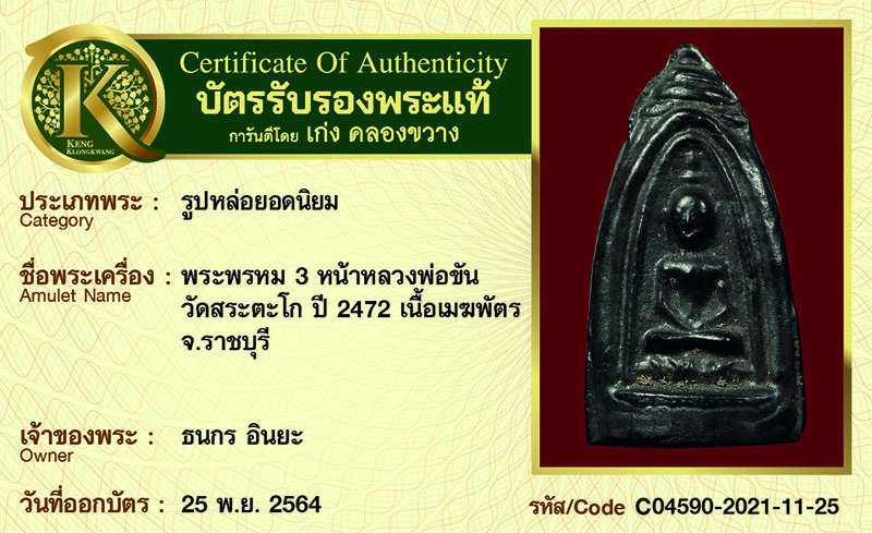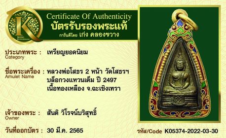 การันตีพระแท้ 100% พร้อมบัตรรับรองพระแท้ เก่ง คลองขวาง