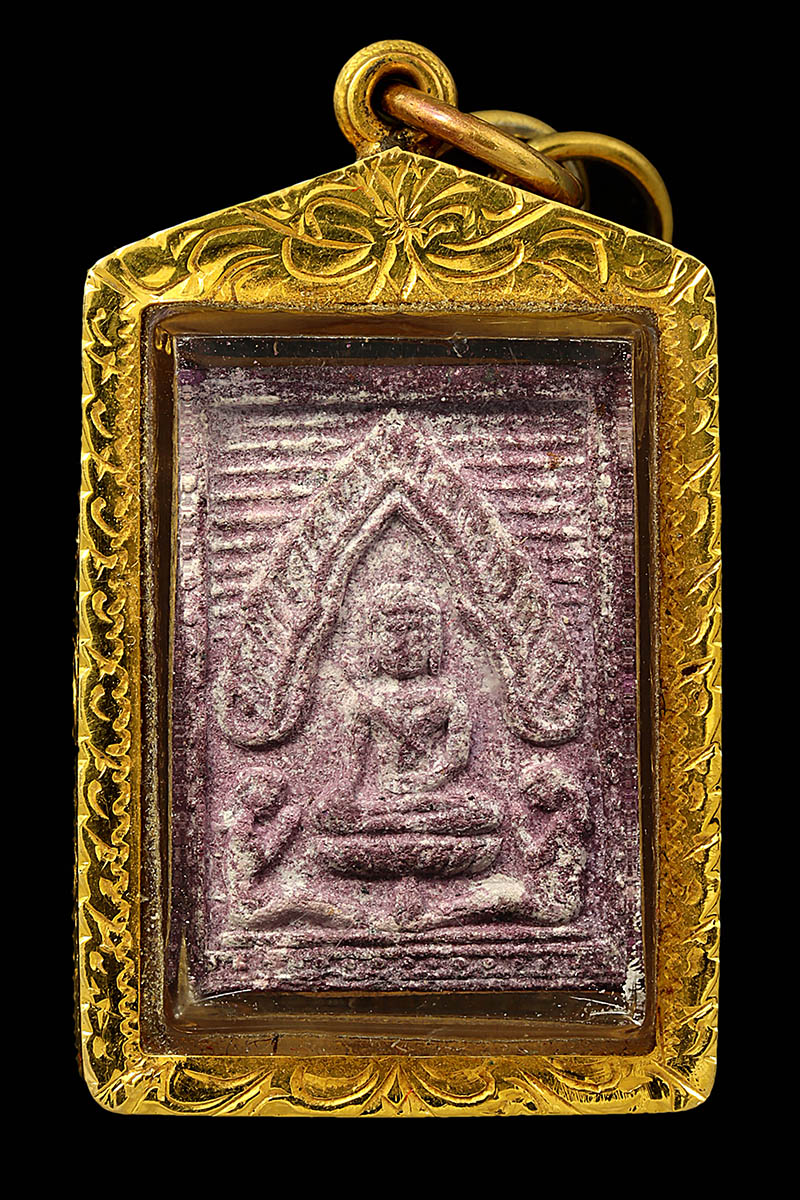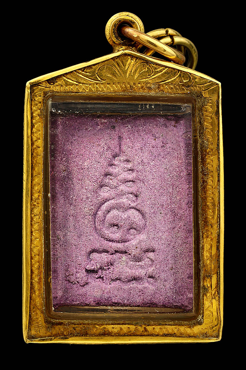 พระผงของขวัญหลวงพ่อยงยุทธ วัดเขาไม้แดง พิมพ์ขุนแผนสะกดทัพ ปี 2525 เนื้อผง (สีม่วง) จังหวัดชลบุรี
