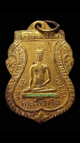 เหรียญพระศรีอารีย์ วัดไลย์ ปี 2467 เนื้อทองแดงกะไหล่ทอง จังหวัดลพบุรี