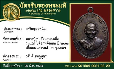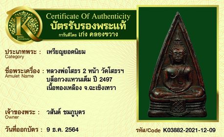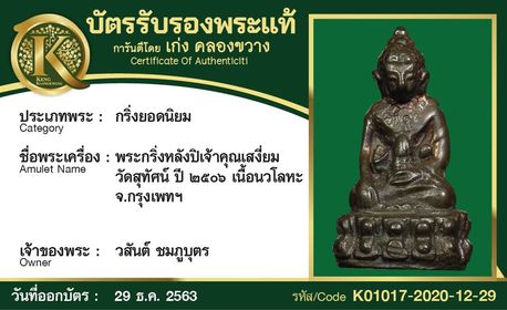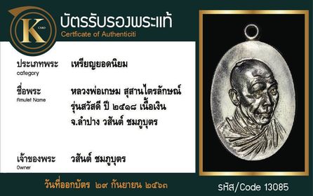 การันตีพระแท้ 100% พร้อมบัตรรับรองพระแท้ เก่ง คลองขวาง