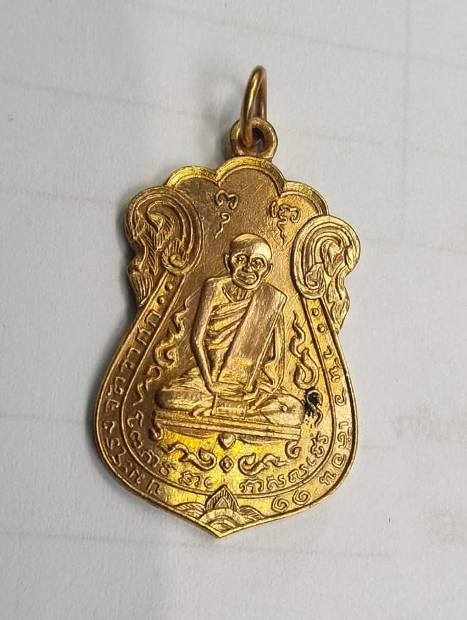 เหรียญลป.เอี่ยม วัดหนัง พิมพ์ใหญ่ บล็อกมีเอ เนื้อทองแดงกะไหล่ทอง ปี2515