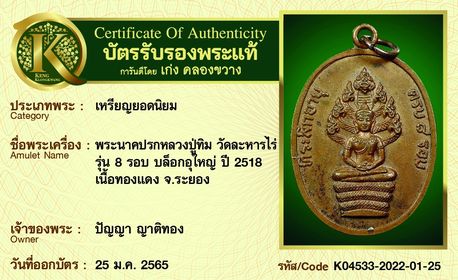 รับประกันพระแท้ โดย บัตรการันตีพระแท้ เก่ง คลองขวาง