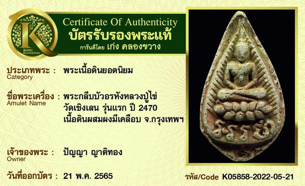 พระกลีบบัวอรหังหลวงปู่ไข่ วัดเชิงเลน รุ่นแรก ปี2470