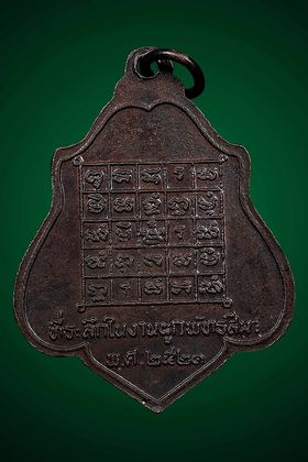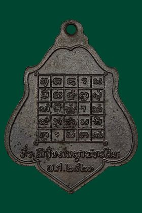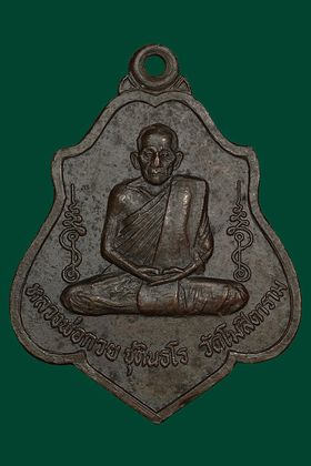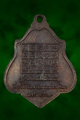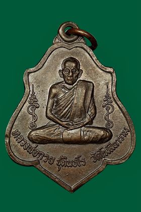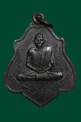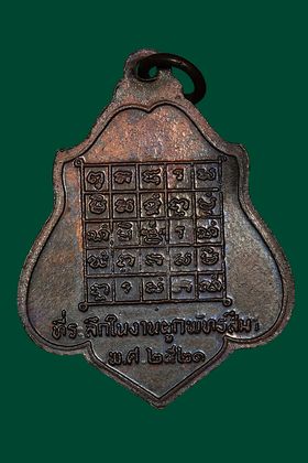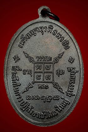 เหรียญหลวงพ่อกวย วัดโฆสิตาราม รุ่นหลังยันต์ตาราง ปี 2521 เนื้อทองแดงรมดำ จังหวัดชัยนาท