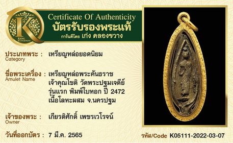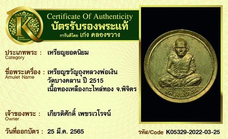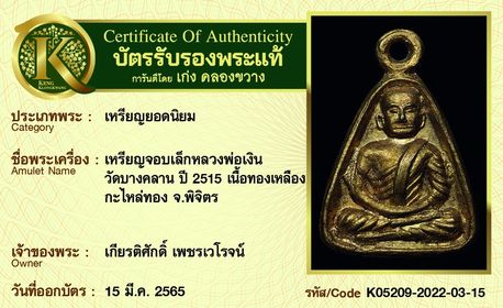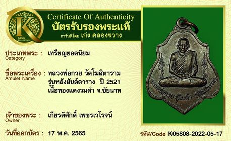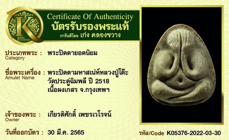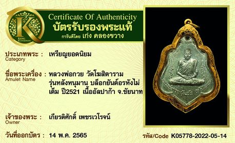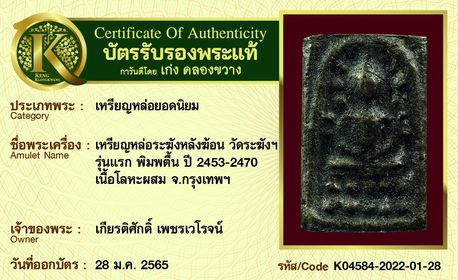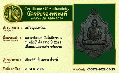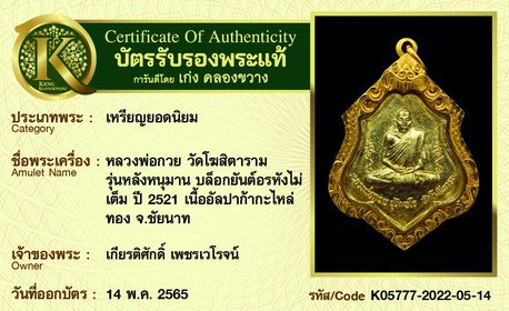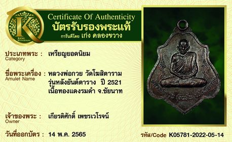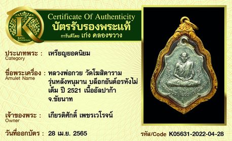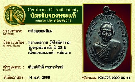 รับประกันพระแท้ โดย บัตรการันตีพระแท้ เก่ง คลองขวาง
