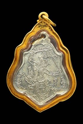 เหรียญหลวงพ่อกวย วัดโฆสิตาราม รุ่นหลังหนุมาน บล็อกอระหังไม่เต็ม ปี 2521 เนื้ออัลปาก้ากะไหล่ทอง จังหวัดชัยนาท