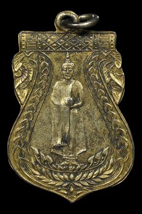 เหรียญพระศรีอารีย์ วัดอินทร์ รุ่นแรก ปี 2470 เนื้อทองแดงกะไหล่ทอง จังหวัดกรุงเทพฯ