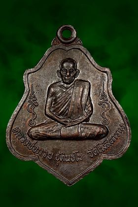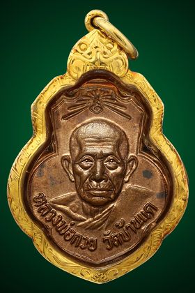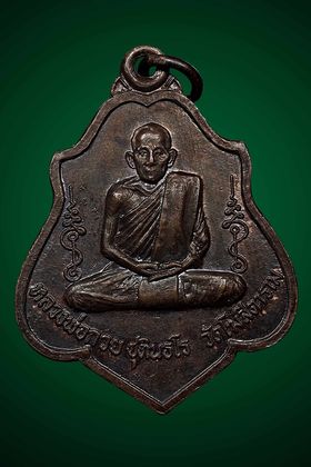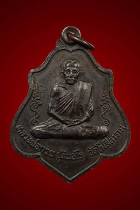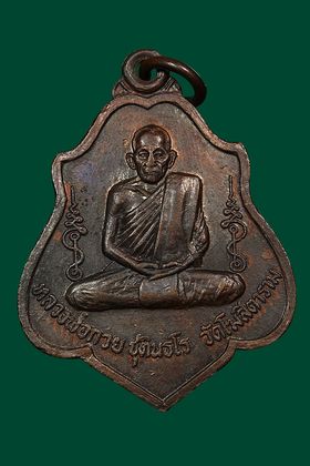 เหรียญหลวงพ่อกวย วัดโฆสิตาราม รุ่นจตุพิธพรชัย ปี 2518 เนื้อทองแดงรมดำ จังหวัดชัยนาท