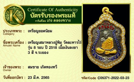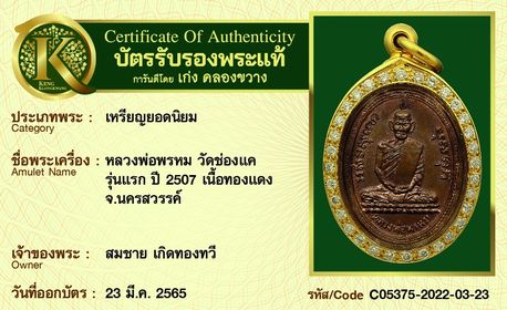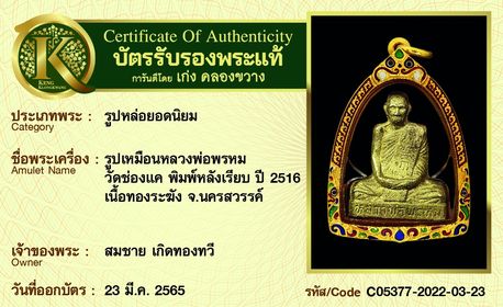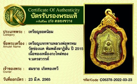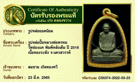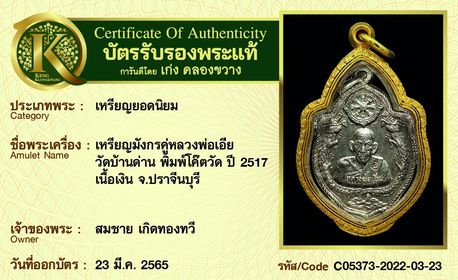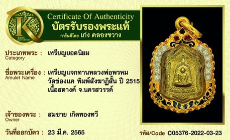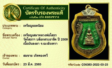 รับประกันพระแท้ โดย บัตรการันตีพระแท้ เก่ง คลองขวาง