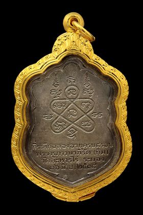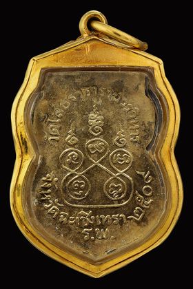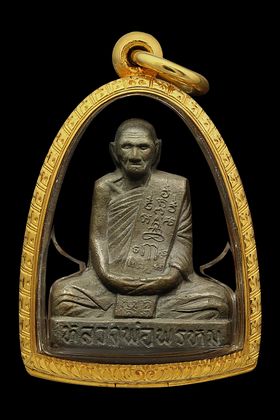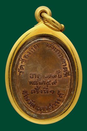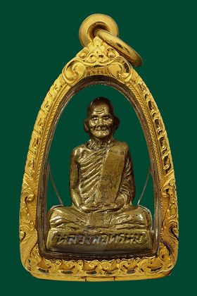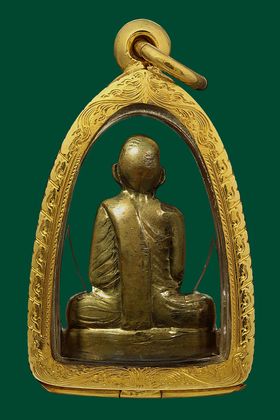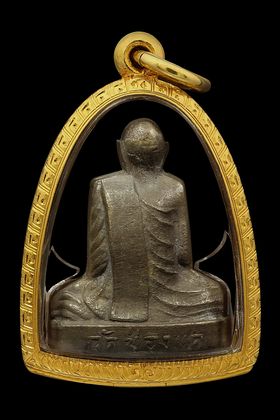 หลวงปู่ทวด วัดช้างให้ รุ่นหลังหนังสือเล็ก บล็อก ว.จุด ปี 2505 เนื้อทองเหลือรมดำ จังหวัดปัตตานี