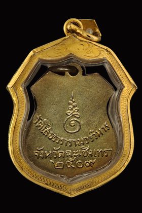 เหรียญแจกทานหลวงพ่อพรหม วัดช่องแค บล็อกสังฆาฏิสั้น ปี 2515 เนื้อทองเหลือกะไหล่ทอง จ.นครสวรรค์