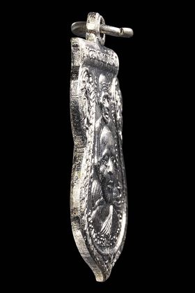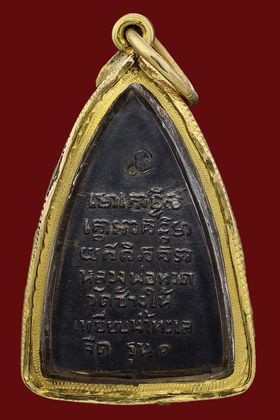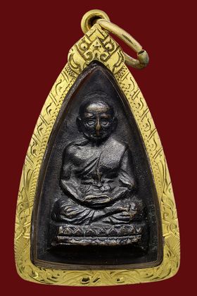 กลีบบัวหลวงปู่ทวด วัดช้างให้ บล็อก รุ่น 1 ปี 2507 เนื้อทองเหลืองรมดำ จังหวัดปัตตานี