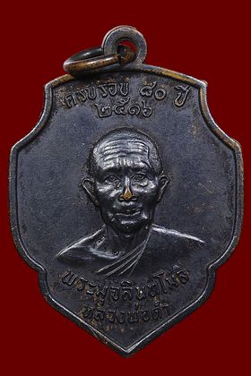 เหรียญหลวงพ่อดำ วัดมุจลินทวาปี รุ่นแรก ปี 2516 เนื้อทองแดงรมดำ จังหวัดปัตตานี