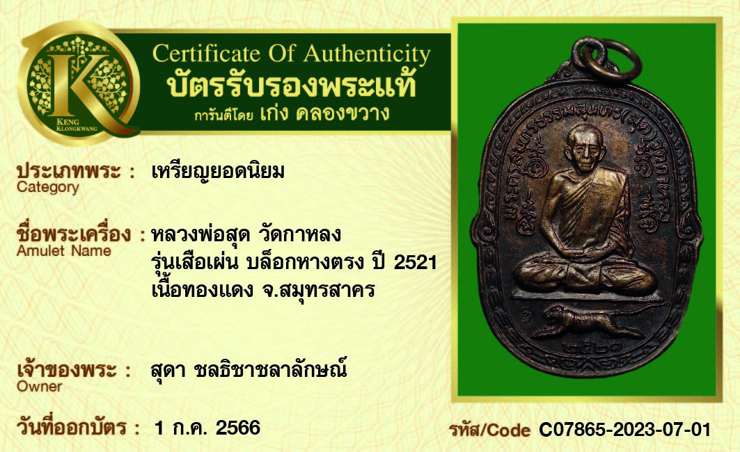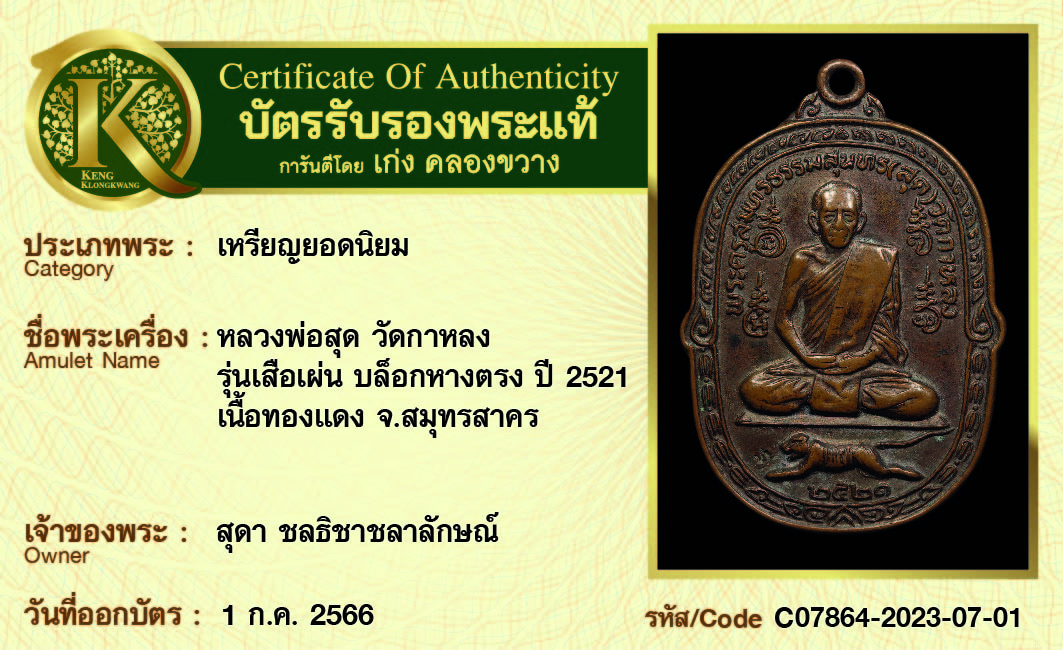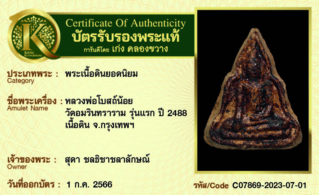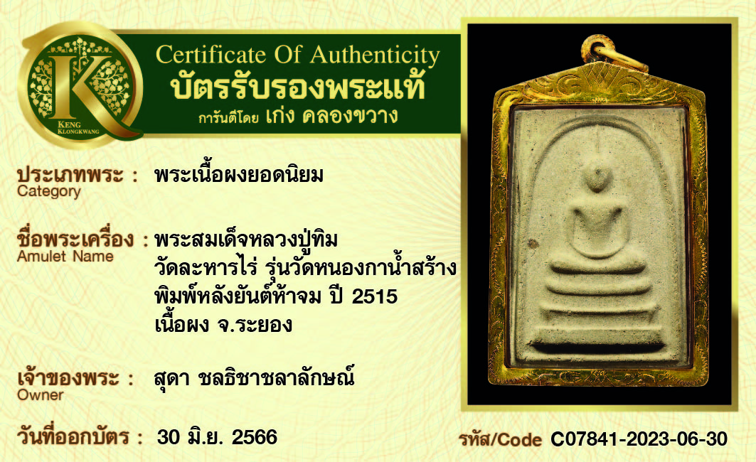 การันตีพระแท้ 100% พร้อมบัตรรับรองพระแท้ เก่ง คลองขวาง