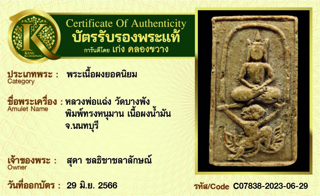 หลวงพ่อแฉ่ง วัดบางพัง พิมพ์ทรางหนุมาน เนื้อผงน้ำมัน จังหวัดนนทบุรี