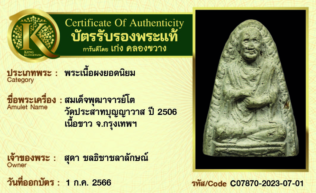 สมเด็จพุฒาจารย์โต วัดประสาทบุญญาวาส ปี 2506 เนื้อขาว จ.กรุงเทพฯ