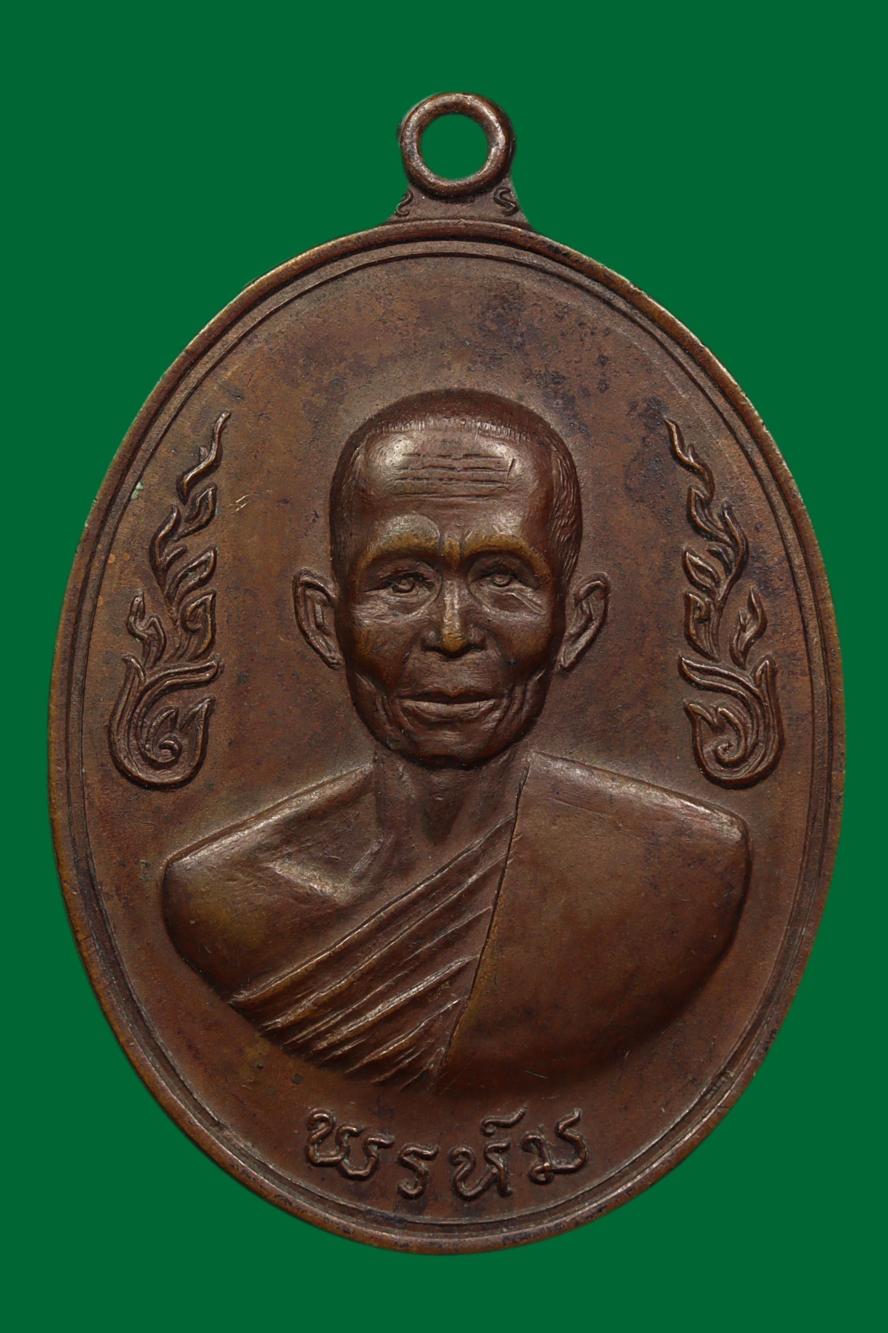 เหรียญกนกข้าง หลวงพ่อพรหม วัดขนอนเหนือ ปี 2519 เนื้อทองแดง จังหวัดอยุธยา