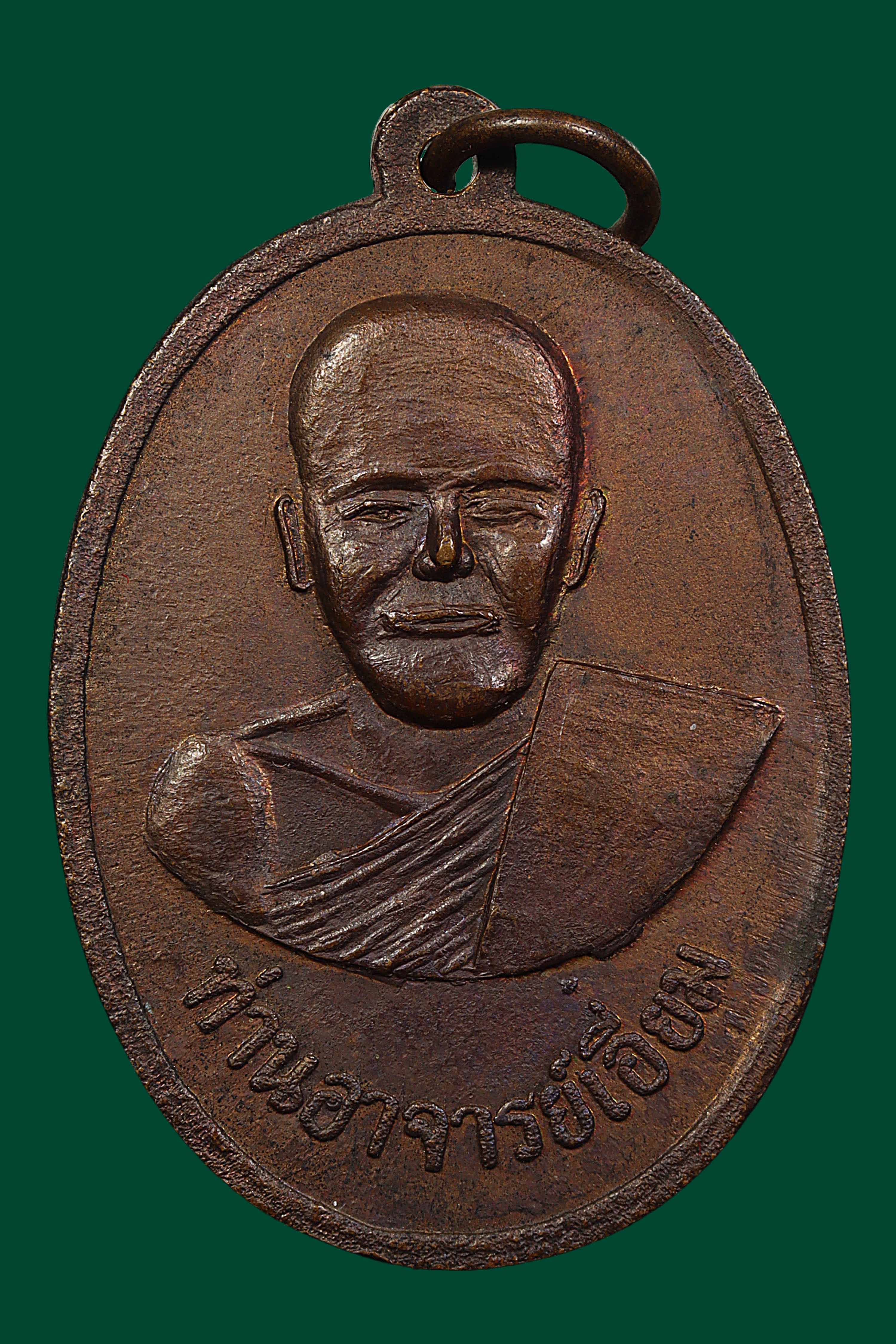 เหรียญหลวงพ่อมุม วัดปราสาทเยอเหนือ รุ่นนักกล้าม ปี 2517 เนื้อทองแดง จ.ศรีกะเกษ