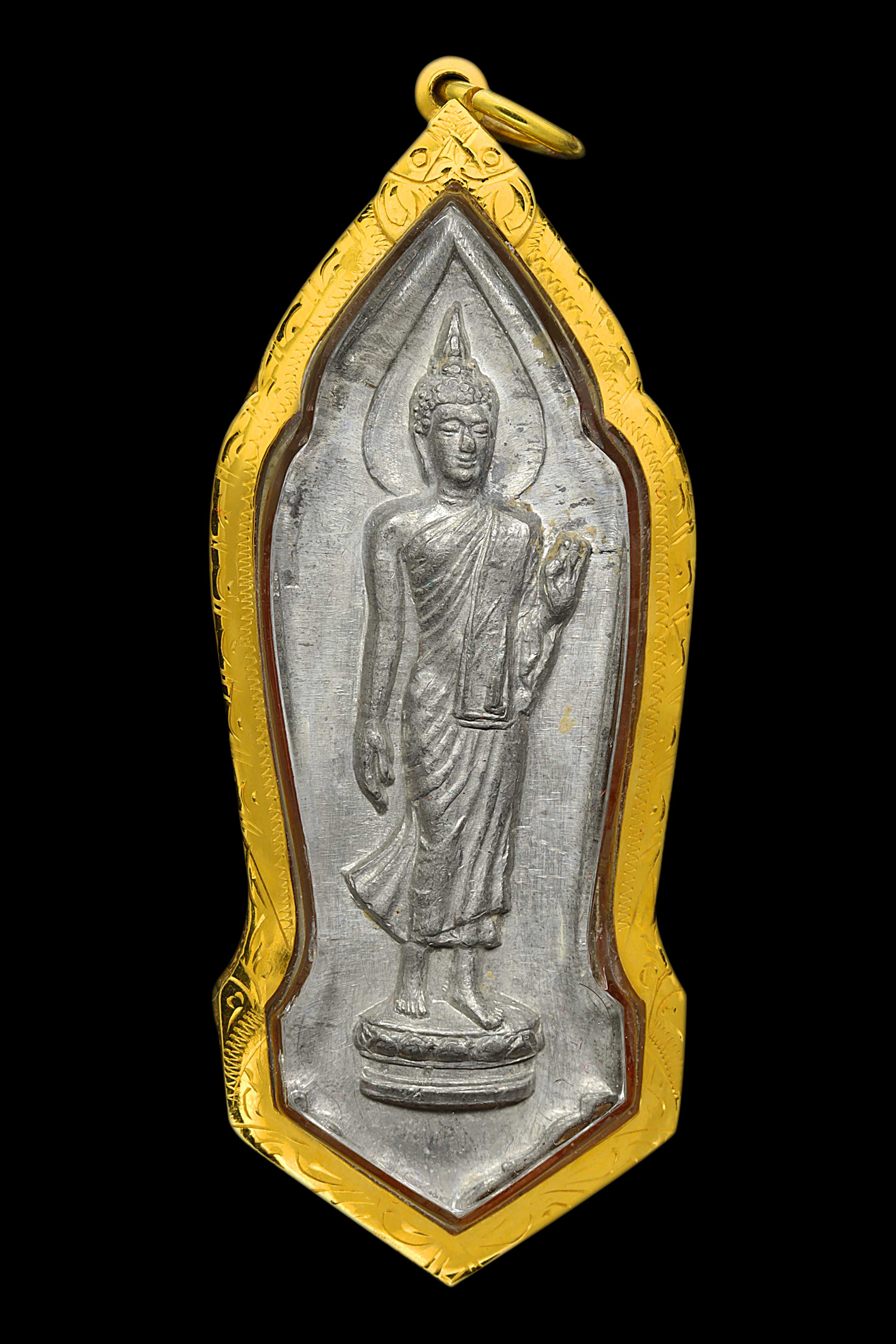 พระลีลา 25 พุทธศตวรรษ รุ่นแรก บล็อกมีเข็ม ปี 2500 เนื้อตะกั่ว จ.นครปฐม