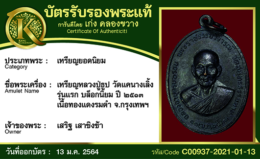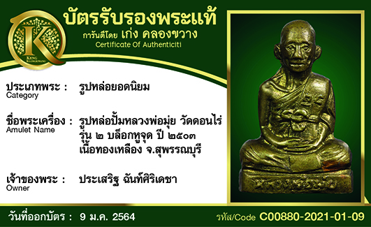 การันตีพระแท้ 100% พร้อมบัตรรับรองพระแท้ เก่ง คลองขวาง