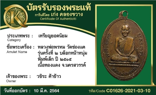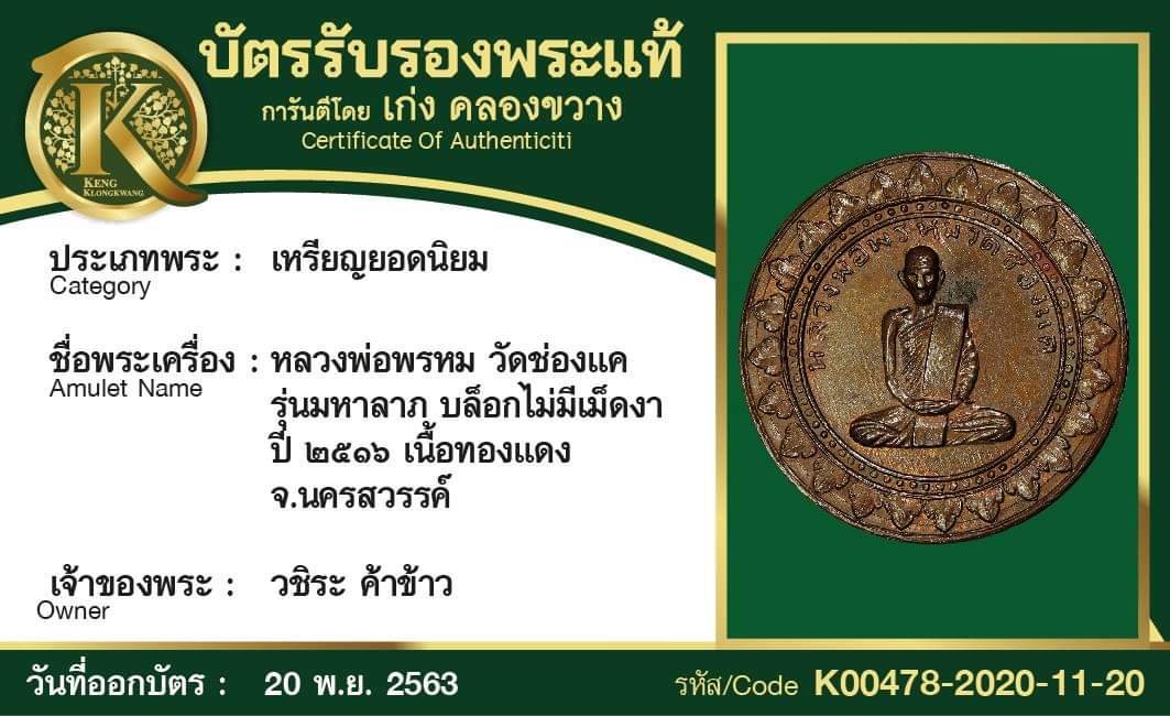 เหรียญมหาลาภหลวงพ่อพรหมวัดช่องแค.จ.นครสวรรค์