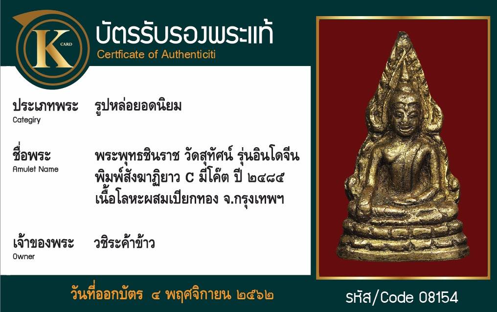 พระพุทธชินราชวัดสุทัศน์รุ่นอินโดจีนพิมพ์สังฆาฎิยาวC.2485