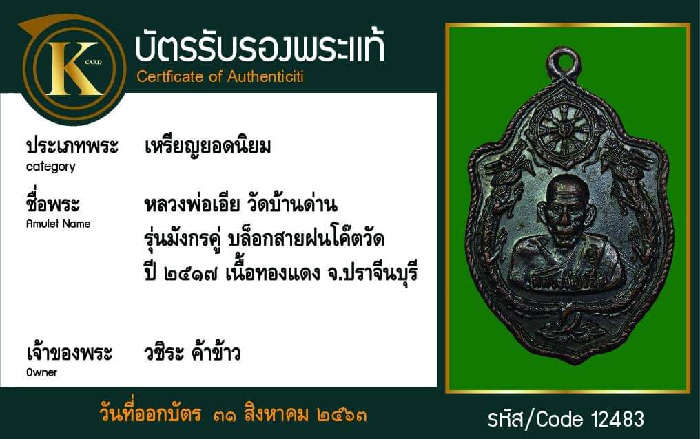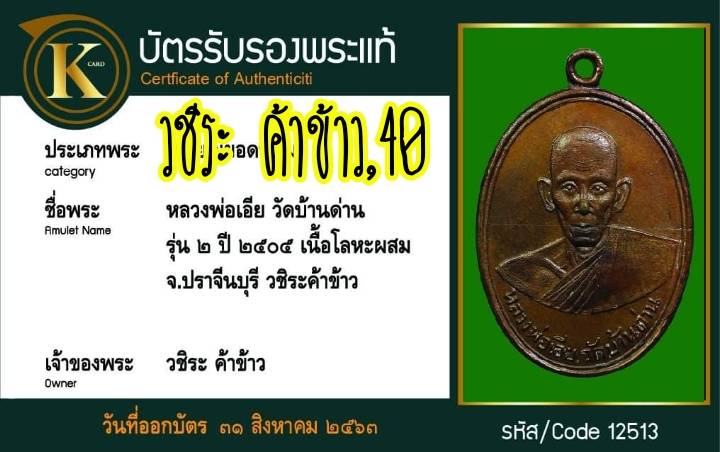 หลวงพ่อเอียวัดบ้านด่านรุ่นมังกรคู่บล็อกสายฝนโค๊ดวัด