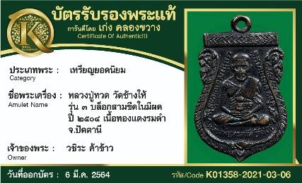 หลวงพ่อทวดวัดช้างให้รุ่น3บล็อกสามขีดในมีผด2504.จ.ปัตตานี