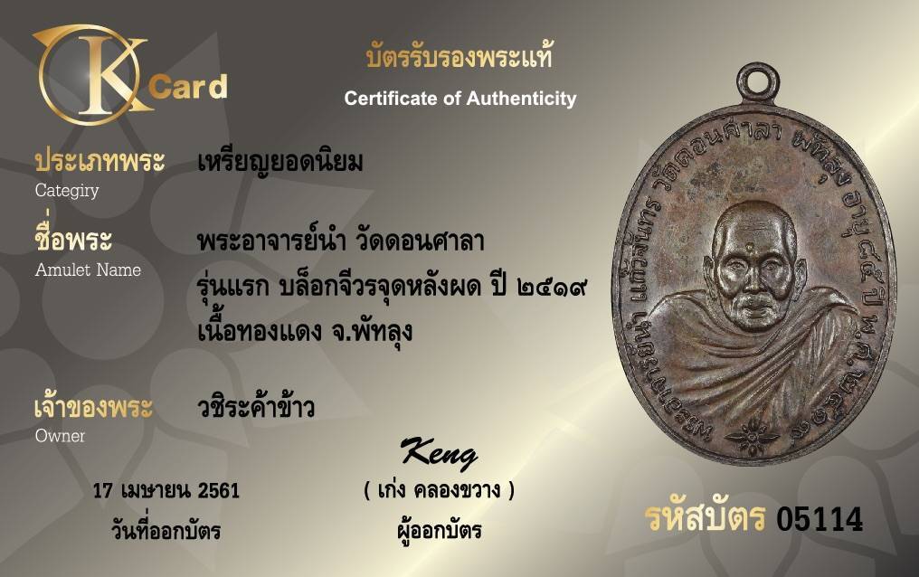 พระอาจารย์นำวัดดอนศาลารุ่นแรกปี2519เนื้อทองแดงบล็อกจีวรจุดหลังผด