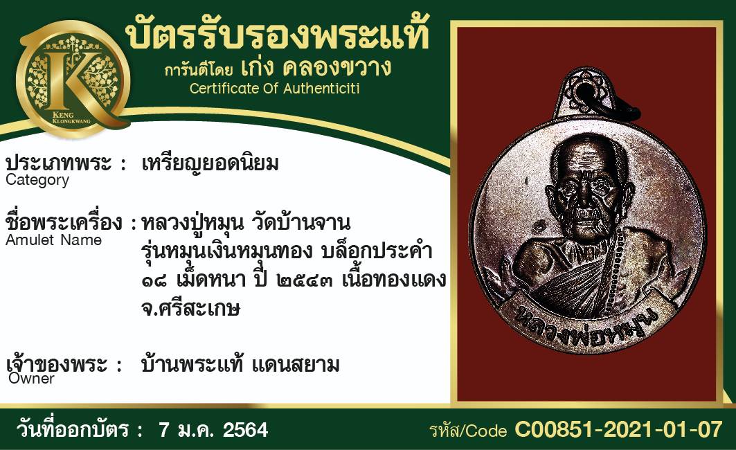 หลวงปู่หมุน วัดบ้านจาน รุ่นหมุนเงินหมุนทอง บล็อกประคำ ๑๘ เม็ดหนา ปี๒๕๔๓