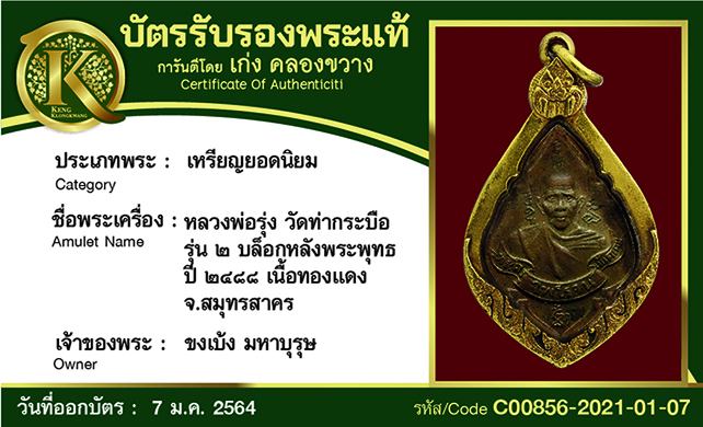 เหรียญหยดน้ำ หลวงพ่อวัดไร่ขิง ปี 2482 เนื้อทองแดง จังหวัดนครปฐม