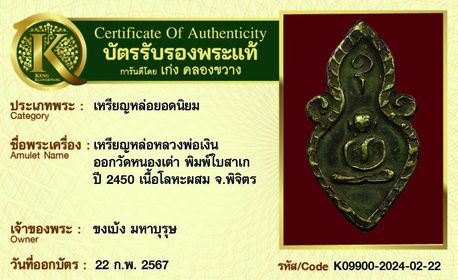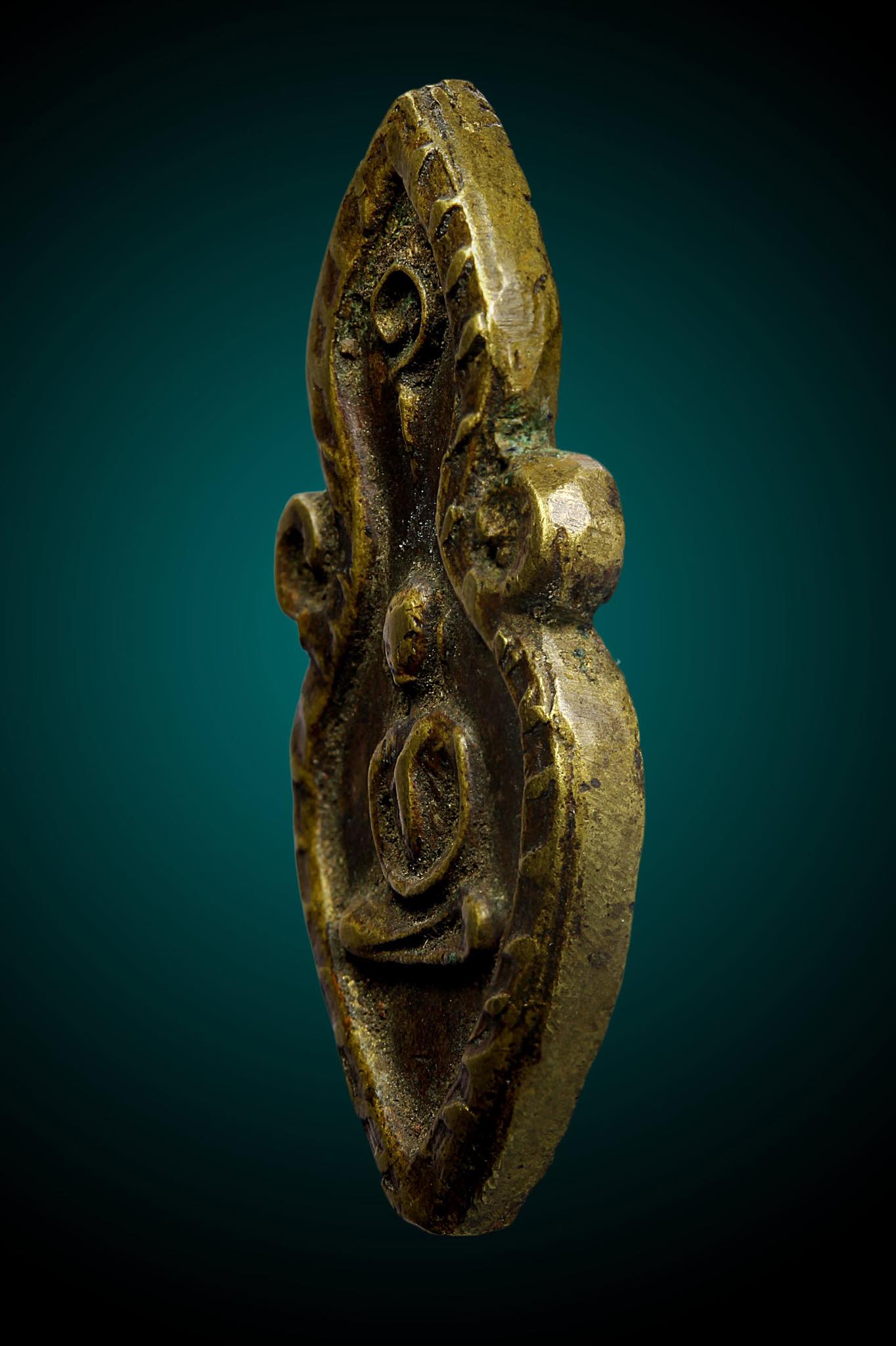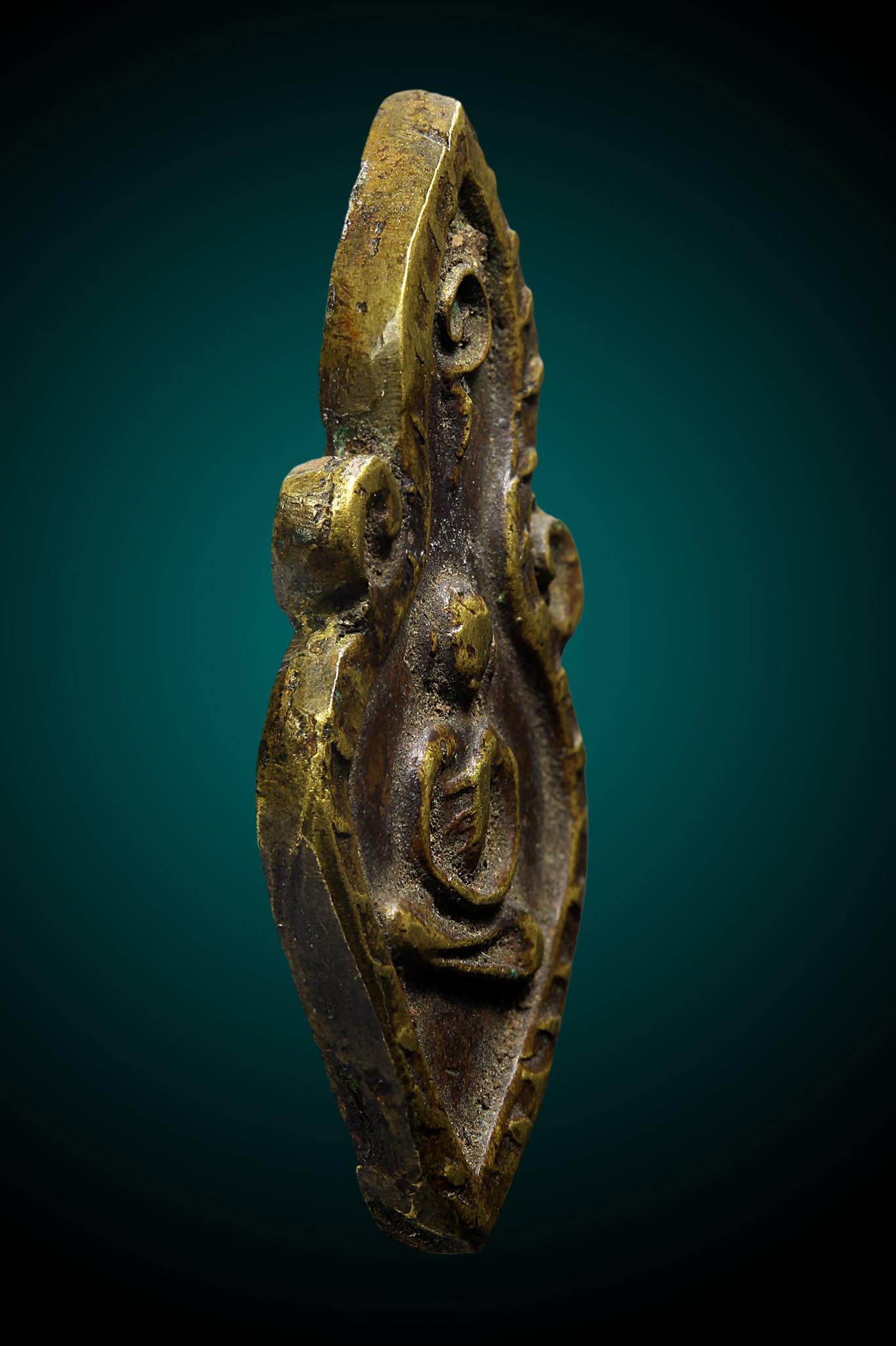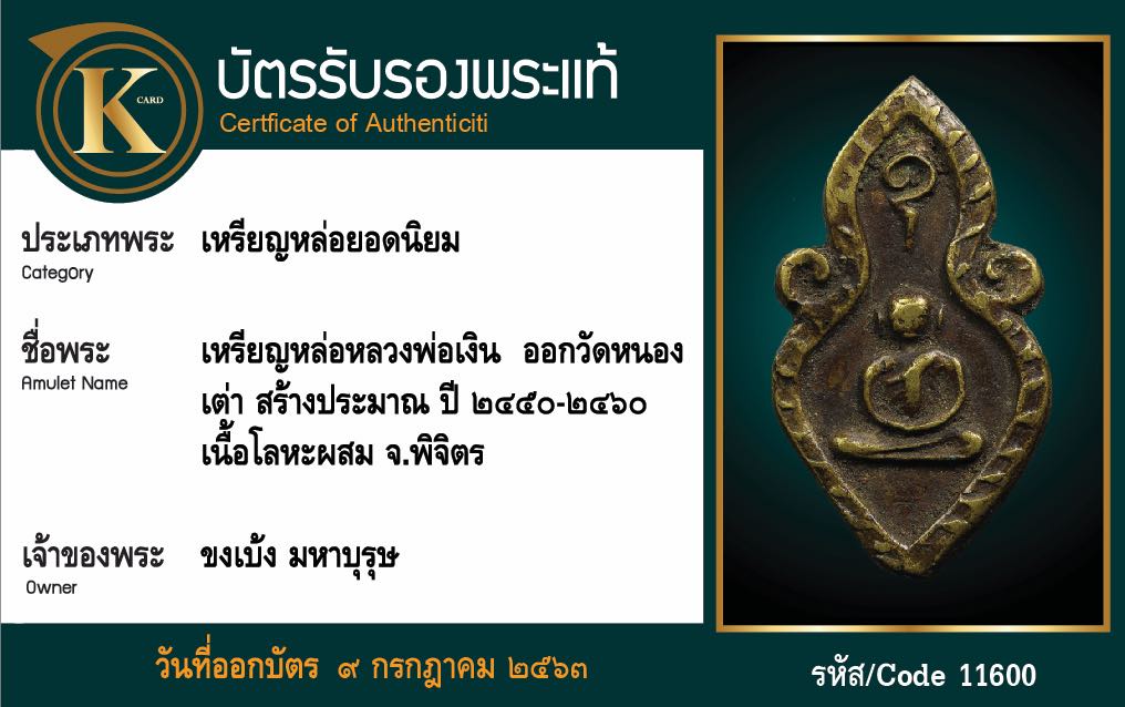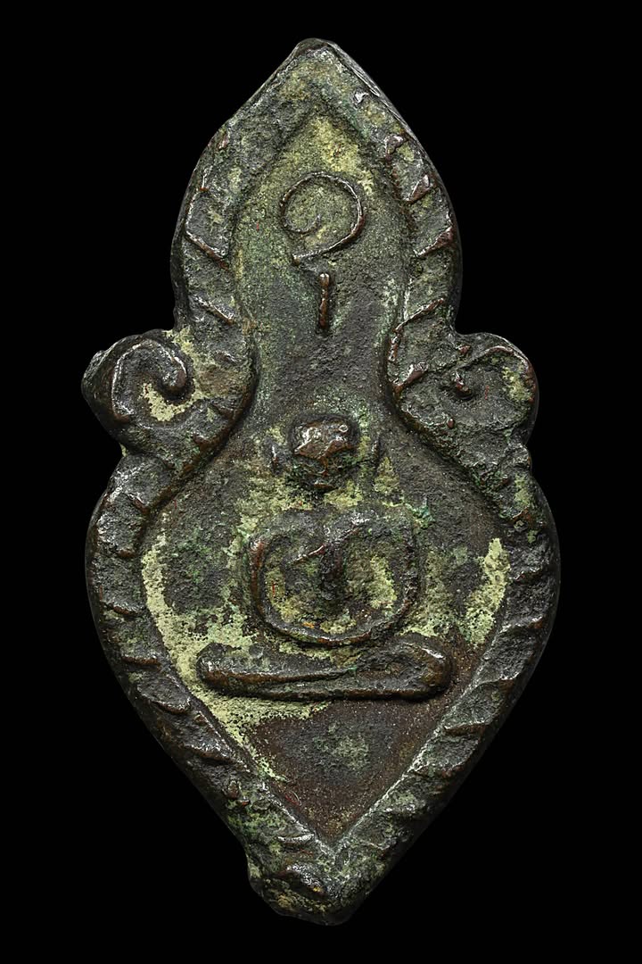 เหรียญหล่อหลวงพ่อเงิน ออกวัดหนองเต่า พิมพ์ใบสาเก ปี 2450 เนื้อโลหะผสม จ.พิจิตร