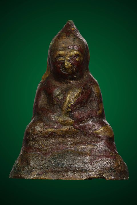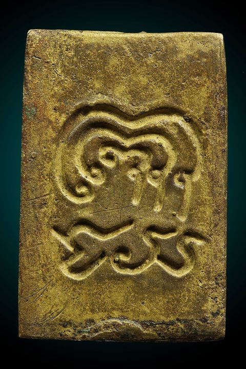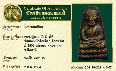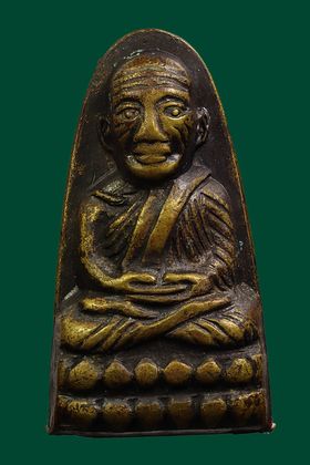 หลวงปู่ทวด วัดช้างให้ รุ่นหลังหนังสือเล็ก บล็อก ว.ตัน ปี 2505 เนื้อทองเหลืองรมดำ จังหวัดปัตตานี
