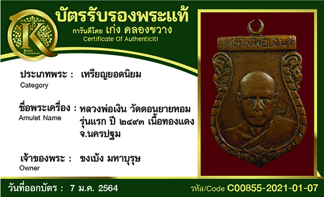 เหรียญหลวงพ่อเงิน วัดดอนยายหอม