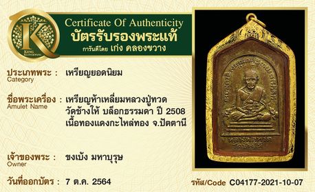 เหรียญห้าเหลี่ยมหลวงปู่ทวด วัดช้างให้ บล็อกธรรมดา ปี 2508 เนื้อทองแดงกะไหล่ทอง จังหวัดปัตตานี