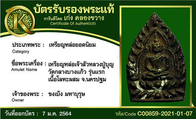 พระชัยวัฒน์หลวงปู่บุญ วัดกลางบางแก้ว