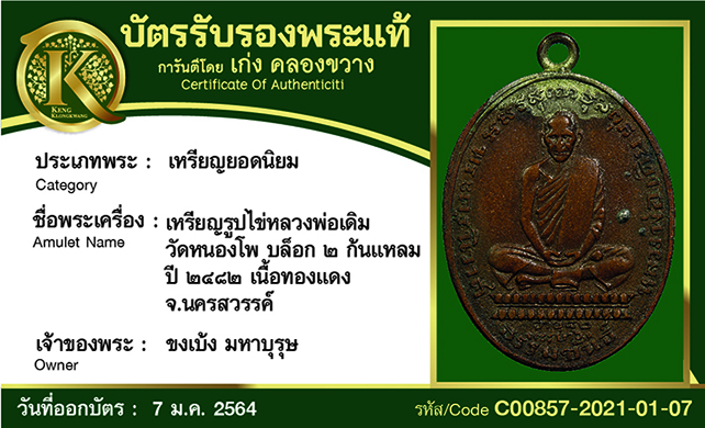 เหรียญหลวงพ่อเดิม วัดหนองโพ