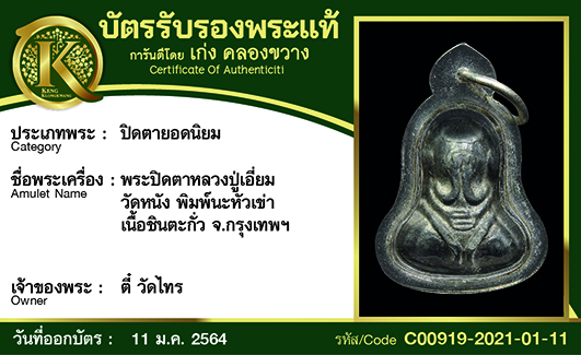 พระปิดตาหลวงปู่เอี่ยม วัดหนัง พิมพ์นะหัวเข่า เนื้อชินตะกั่ว กทม