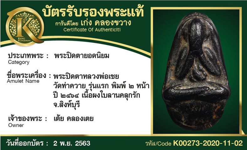 พระปิดตาหลวงพ่อเชย วัดท่าควาย