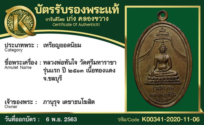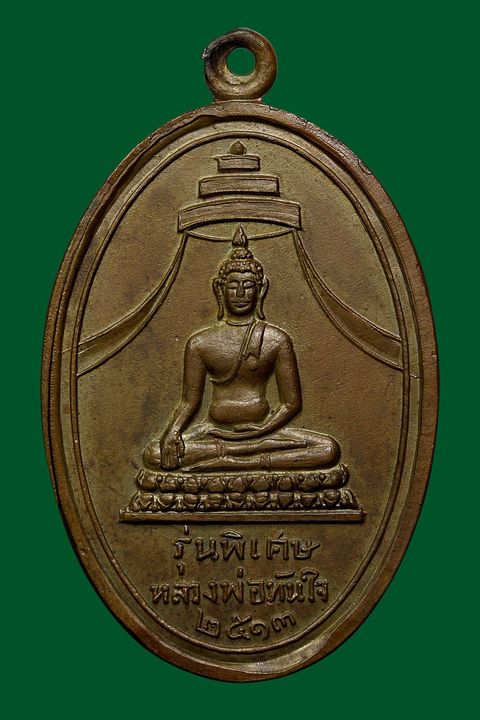 เหรียญหลวงพ่อทันใจ วัดศรีมหาราชา รุ่นแรก ปี 2513 เนื้อทองแดง จังหวัดชลบุรี