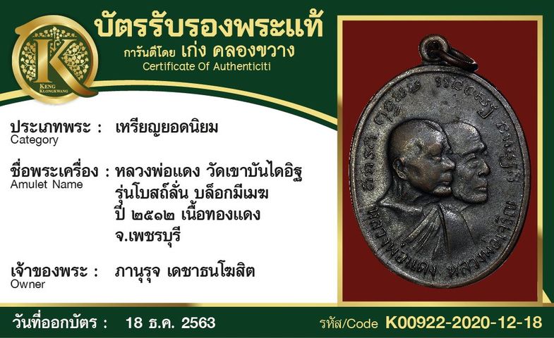 เหรียญหลวงพ่อแดง วัดเขาบันไดอิฐ