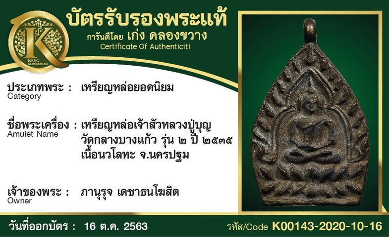 พระชัยวัฒน์หลวงพ่อพลอย วัดเงินบางพรม
